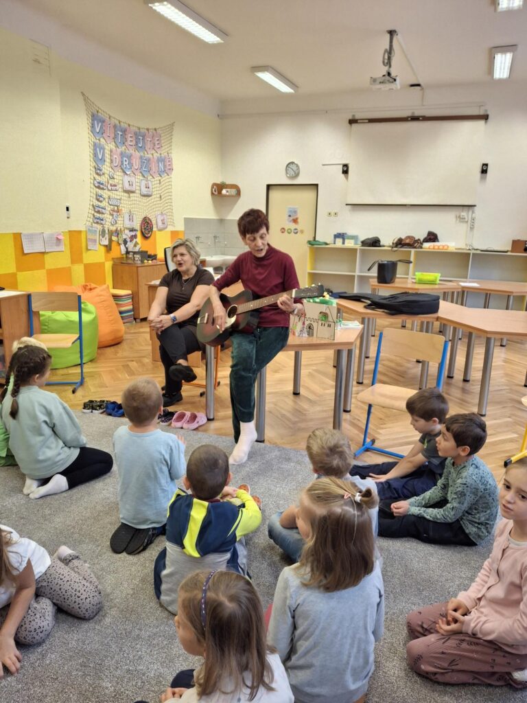 Boženka Tymichová dětem četla další část svých pohádek, a program navíc obohatila hrou na kytaru a zpěvem. 🎶🎸