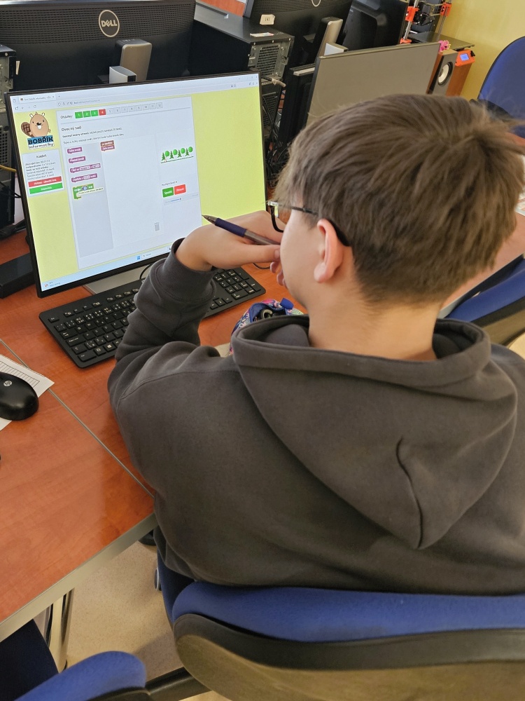 V týdnu od 10. do 14. listopadu 2025 se naše škola zúčastnila celostátní soutěže Bobřík informatiky. Do řešení úloh se zapojili žáci tříd 8. A, 8. B, 9. A a 9. B, kteří si vyzkoušeli své znalosti z oblasti informatiky, logického myšlení a práce s informacemi.