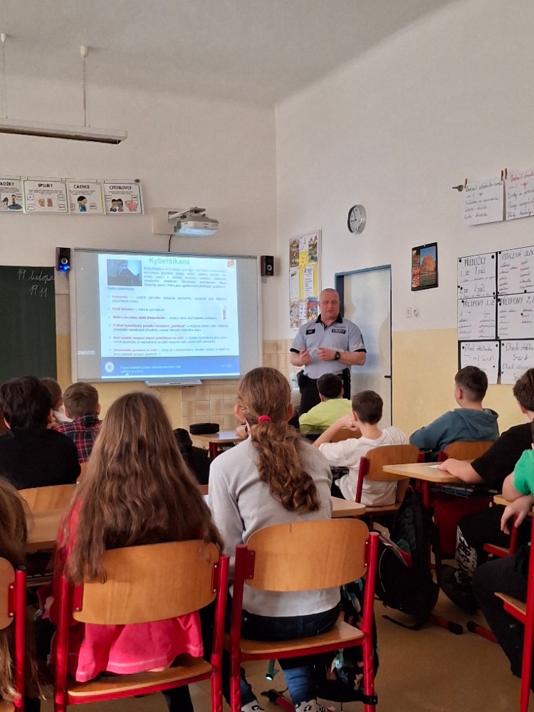 Dne 19.11.2025 proběhla pro žáky 5.ročníků poučná beseda s Policií ČR na téma „Bezpečně v kyberprostoru“. Cílem bylo naučit mladé uživatele internetu, jak se bránit online rizikům.