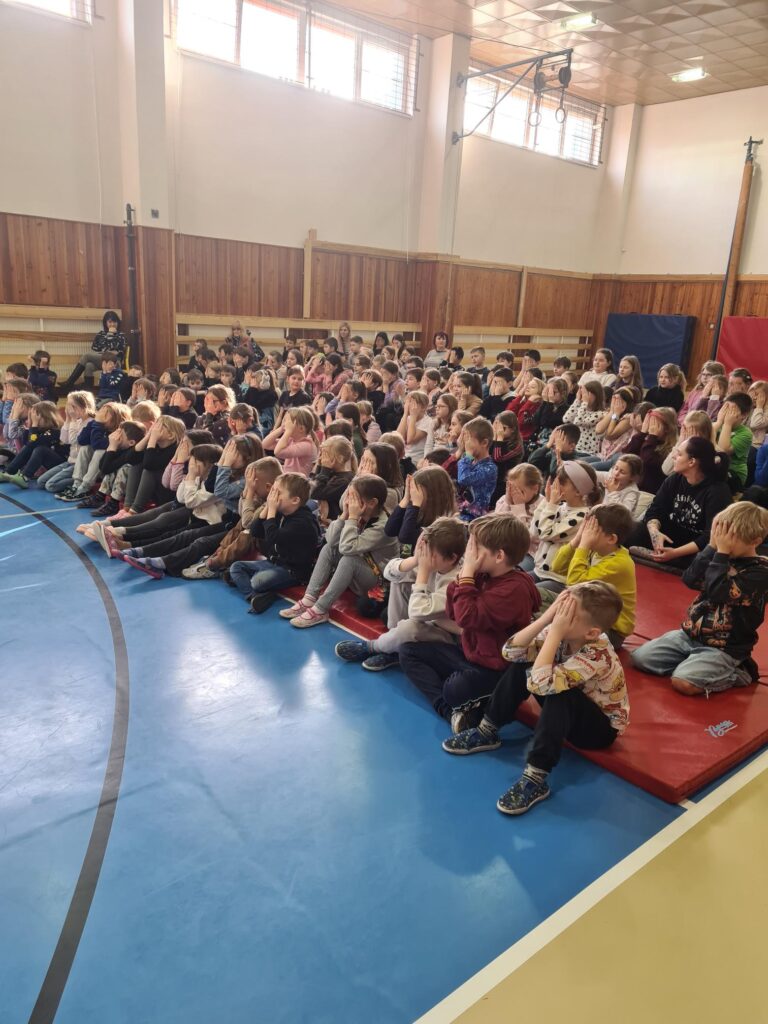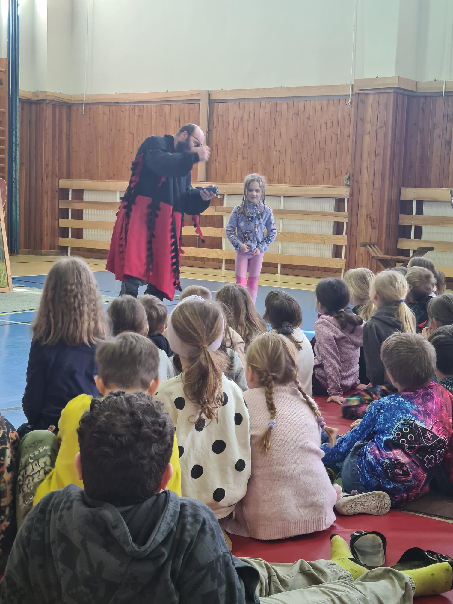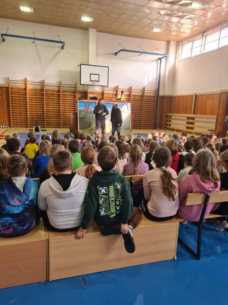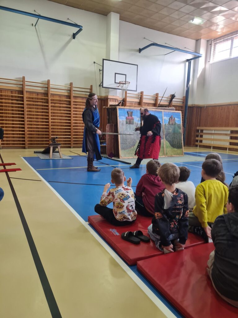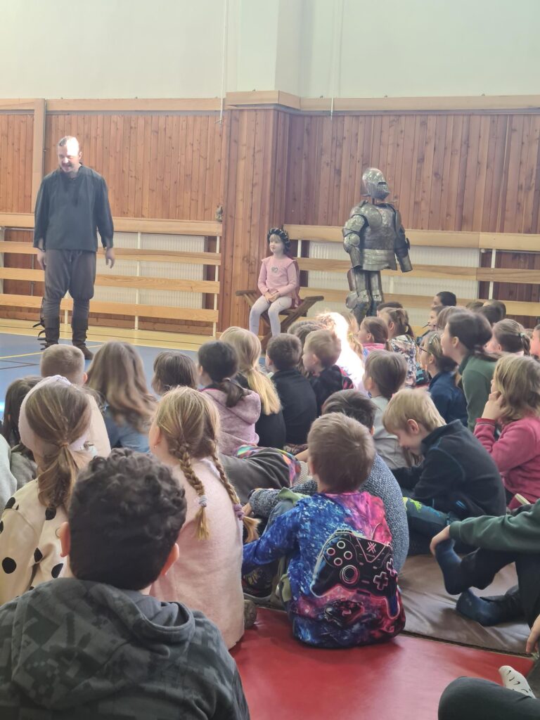 Děti z prvního stupně si užily představení o rytířích a princezně. Některé z nich se dokonce zapojily do samotného vystoupení. Velký úspěch měl i napínavý souboj s meči.