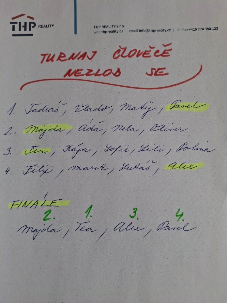 Součástí projektu byl turnaj ve hře „Člověče, nezlob se“, který přinesl nejen napínavé momenty, ale i procvičování počítání, pravděpodobnosti a taktiky. Žáci si během hry uvědomovali význam plánování tahů a předvídání kroků soupeřů.
